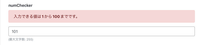 フィールドに数値以外の値を入力してほしくないとき、これを使うともし全角数字で入力されても自動的に半角に変換してくれます。最大値や最小値を設定することもできます。